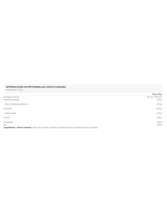 Uma verdadeira fonte de hidratos de carbono, com 40,5 g de hidratos de carbono por cada porção de 50 g. Os hidratos de carbono ajudam os músculos a recuperar após um esforço físico intenso ou prolongado. Durante a atividade física, as reservas de glicogénio esgotam-se, provocando a fadiga muscular. O creme de arroz é uma importante fonte de energia e dar-lhe-á a força necessária para os seus treinos mais intensos.