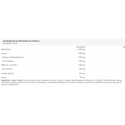 Ingredientes - Sabor a tropical: água, beta-alanina, sumo de maçã concentrado, taurina, L-Arginina Alfa-cetoglutarato, L-Citrulina Malato, Cafeína Anidra, Inosina, regulador de acidez, citrato de sódio, aromas, maltodextrina, edulcorantes (acessulfame K, sucralose, neotame), conservantes (sorbato de potássio, benzoato de sódio), maltodextrina.