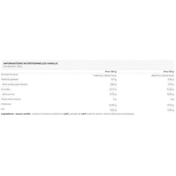 Ingredientes - aroma de baunilha : caseína micelar (contém LEITE), LEITE desnatado em pó, aroma: natas, edulcorante (sucralose).