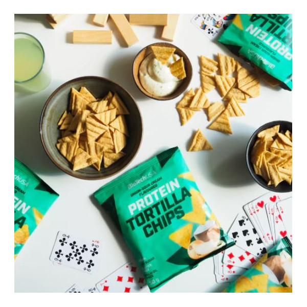Biotech USAAs tortilhasproteicas (50g) são batatas fritas tipo tortilha fabricadas pela marca .