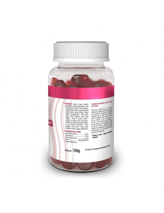 Para além do café verde, as gomas contêm noz de cola, que é rica em cafeína. A cafeína é um estimulante que pode aumentar o metabolismo e promover a queima de gordura, tornando-a um ingrediente popular em muitos queimadores de gordura. São também enriquecidas com 30 mg de guaraná, uma planta rica em cafeína.