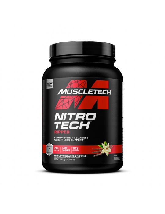 Nitro-Tech Ripped fornece uma mistura de 30 gramas de péptidos e isolado de soro de leite, CLA, MCT, tartarato de L-Carnitina, extrato de chá verde, extrato de frutos de roseira brava, algas em pó (algas marinhas) e Coffea canephora robusta. É o complemento ideal para um regime de emagrecimento, perda de gordura e definição muscular!