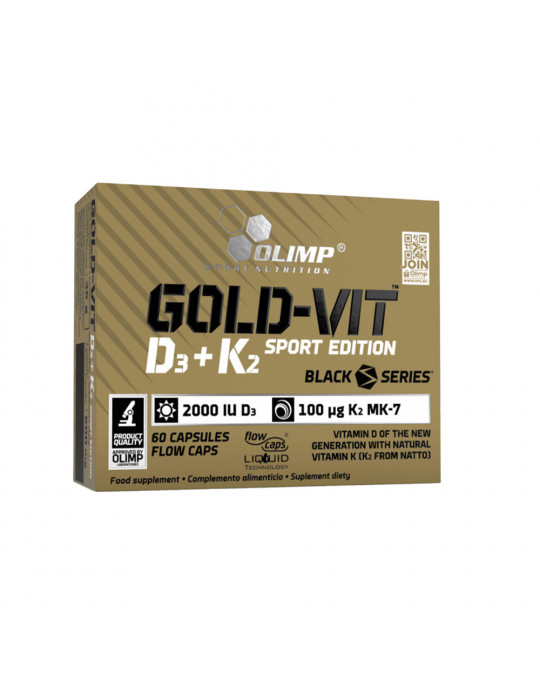 Olimp Gold-Vit® D3+K2 Sport Edition é um suplemento alimentar sob a forma de cápsulas líquidas, da marca Olimp sport nutrition, que oferece uma dose elevada de vitamina D3 de 50 µg (2000 UI) por cápsula.