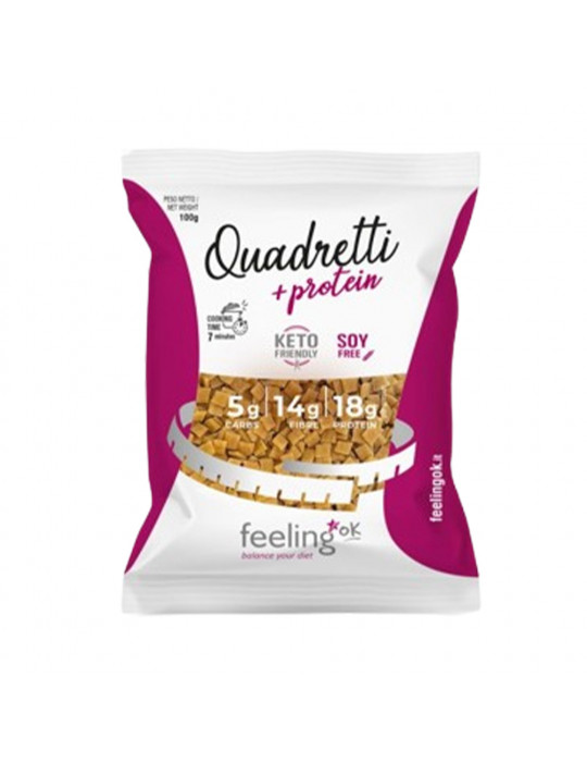 Desfrute do Quadretti + Proteína da marca italiana Feeling OK. Esta massa proteica de alta qualidade e com baixo teor de hidratos de carbono é perfeita para satisfazer as suas necessidades nutricionais enquanto desfruta de uma refeição deliciosa.