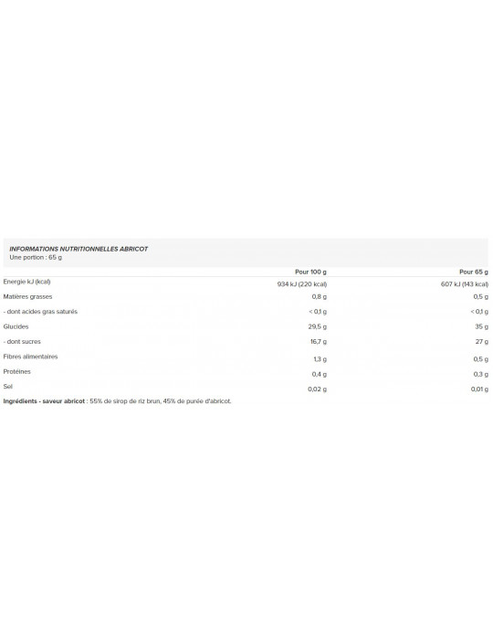 Ingredientes - sabor a alperce: 55% xarope de arroz integral, 45% puré de alperce.