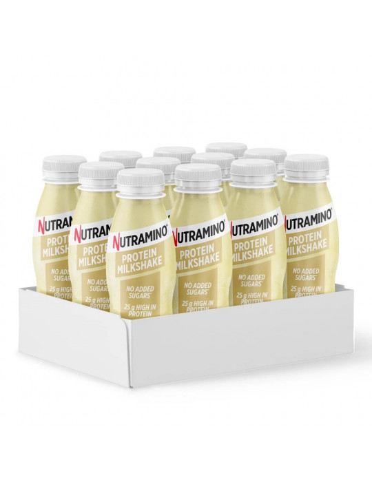 Nutramino Protein Shake (330 ml) é uma bebida láctea aromatizada que contém proteínas do leite e edulcorantes. Tem a textura cremosa de um verdadeiro batido.
