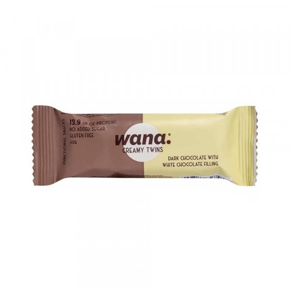 Creamy Twins (45g) é um snack proteico composto por dois rebuçados, fabricado pela marca Wana.