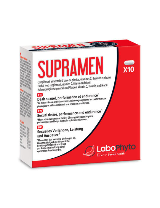 SUPRAMEN (10 cápsulas) é um suplemento da marca Labophyto especialmente concebido para melhorar a saúde sexual e o bem-estar geral dos homens.