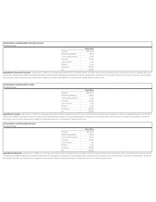 esta barra foi concebida para satisfazer os desejos de doces, oferecendo principalmente hidratos de carbono complexos, com uma quantidade mínima de açúcar. Apesar do seu delicioso sabor e textura suave e agradável, não compromete o seu compromisso com uma dieta saudável e equilibrada. Podem ser consumidas durante uma fase magra ou de perda de peso, graças ao seu baixo teor de açúcar, com menos de 1,5 g por barra. Cada barra de 60 g contém até 16,8 g de proteínas. A combinação especializada de proteínas e hidratos de carbono da barra ajuda as pessoas activas a manter ou aumentar a massa muscular. Este snack proteico não contém glúten e pode ser consumido facilmente a qualquer hora do dia ou durante o treino.