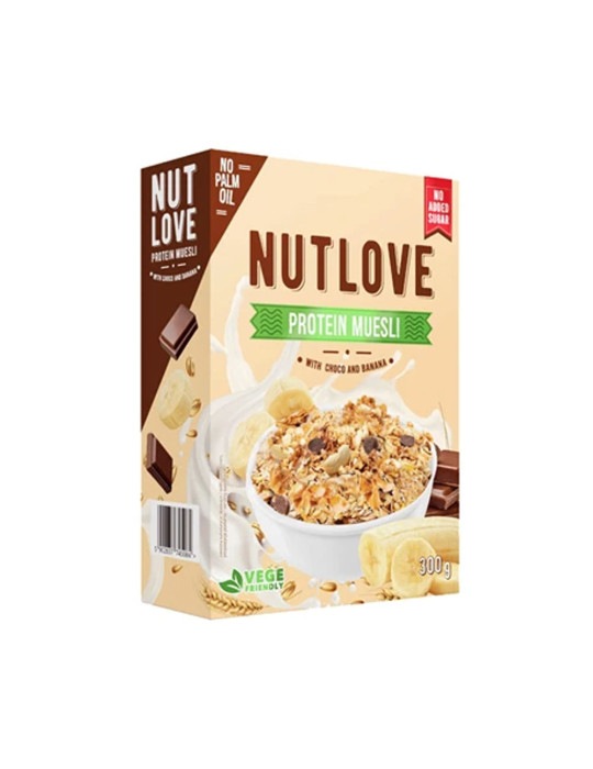 Nutlove Protein Muesli (300g) é um delicioso muesli proteico da Allnutrition feito com nozes, bananas liofilizadas, sementes de abóbora, batatas fritas de soja e pepitas de chocolate. Esta combinação de ingredientes cria um sabor único e agradável, ao mesmo tempo que proporciona uma saciedade duradoura.