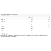 Ingredientes Cafeína Limão: edulcorante: sorbitol, bicarbonato de potássio, acidificantes: ácido cítrico - ácido málico, citrato de magnésio, regulador de acidez: bicarbonato de sódio, cloreto de sódio, cafeína, aroma natural (xarope de glucose, estabilizante: goma arábica, antioxidante: butil-hidroxianisol), vitamina C, edulcorante: sucralose, vitaminas: B12 (manitol) - B6