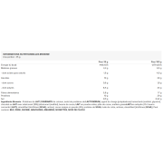 Ingredientes Brownie: Proteína de LEITE(CASEÍNATO de cálcio, isolado de proteína de LACTOSERUM), agente de volume (polidextrose), humectantes (sorbitol, glicerol), chocolate de LEITE com edulcorante (18%) [edulcorante (maltitol), manteiga de cacau, LEITE gordo em pó, massa de cacau, gordura de LEITEanidra (CH: manteiga concentrada(LEITE)), emulsionante (lecitinas(SOJA)), aroma], cacau em pó magro (5%), proteína de SOJA, óleo de colza, aroma, emulsionante (lecitinas(SOJA)). Pode conter: TRIGO, CEVADA, AVEIA, ARÁCIDOS, AMÊNDOAS, CEREJAS, CASTANHA.