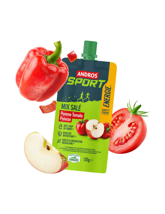 Mude a sua rotina com Andros Sport's Salted Mix Gourd (120g ), snacks ultra práticos de fruta e vegetais concebidos para lhe dar um impulso saudável e de fácil digestão antes, durante ou depois do exercício.