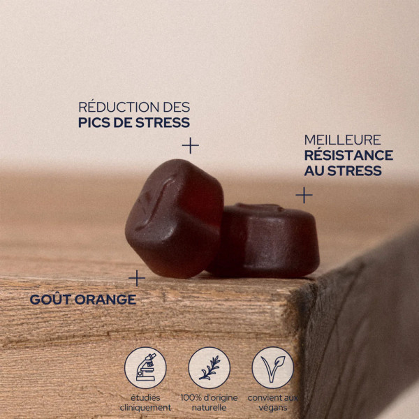 Pode seguir um tratamento de 3 meses para uma ação em profundidade sobre o stress crónico, ou tomar 2 gomas ocasionalmente quando o stress atinge os seus picos.