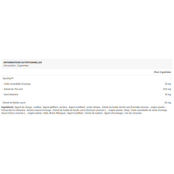SereThy™ - Óleo essencial de laranja - Extrato de chá verde - incluindo teanina | - 21 mg 37,5 mg 15 mg |