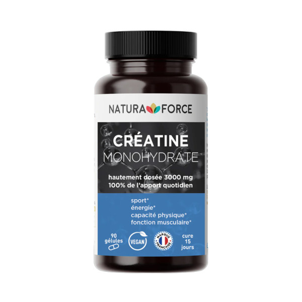 Creatina Monohidrato de Natura Force o monohidrato de creatina é uma solução natural e de qualidade superior para melhorar os seus desempenhos físicos, nomeadamente durante as sessões de exercício curto, intenso e repetido. Cada dose fornece-lhe 3000 mg de creatina monohidratada pura, a dosagem ideal cientificamente validada para o ajudar a ganhar potência, retardar a fadiga muscular e *melhorar a sua recuperação.