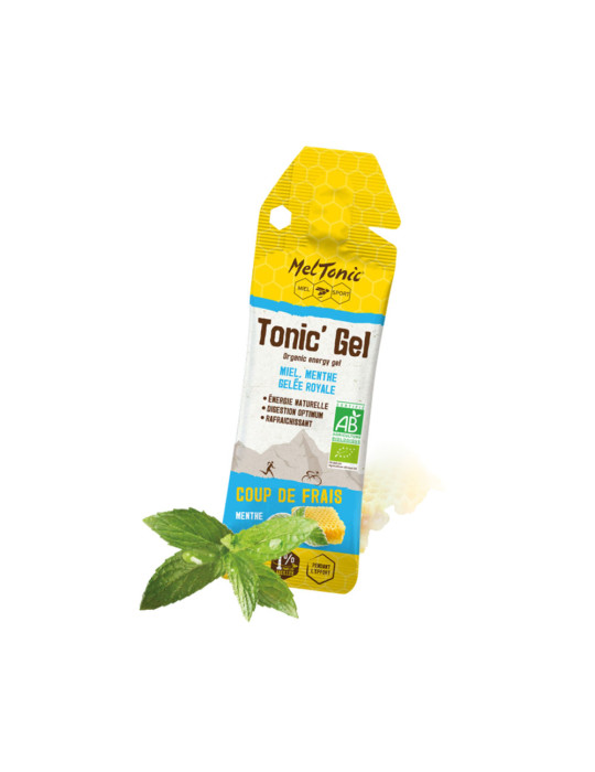 O gel tónico coup de frais (20g) de Meltonic foi concebido para os desportistas que procuram um impulso energético rápido, natural e refrescante. Elaborado com mel de acácia biológico (83,5%), este gel fluido fornece 15,5 g de hidratos de carbono por dose, ideal para manter o esforço sem pesar na digestão.