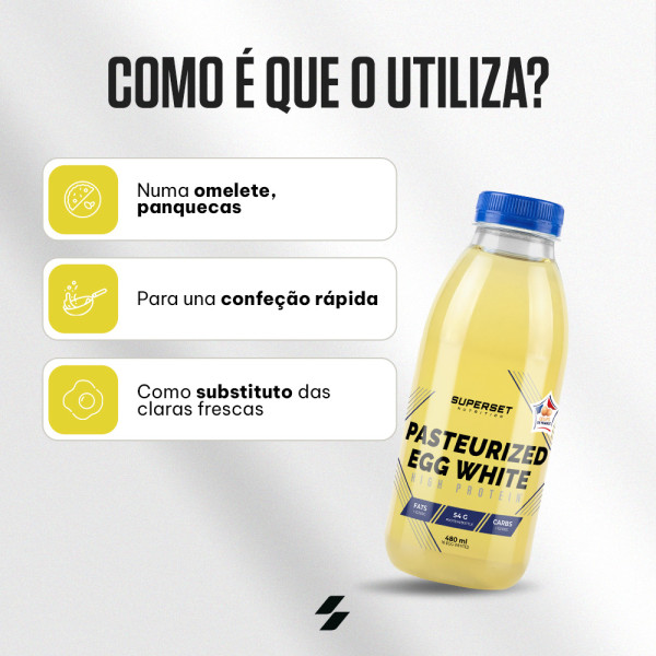 Este frasco de claras de ovo pasteurizadas (480ml) alia qualidade, praticidade e conhecimento nutricional. Concebida pelos nutricionistas da marca, é naturalmente rica em proteínas de elevado valor biológico e em BCAA essenciais, altamente digerível e pouco calórica.