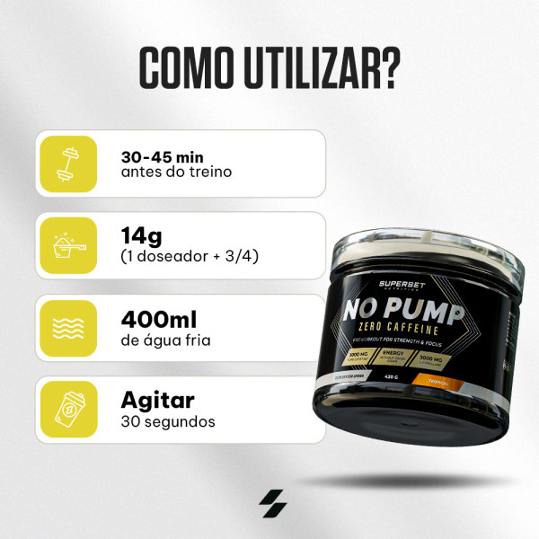 Concebido pelos especialistas em nutrição da marca francesa Superset Nutrition para obter o máximo de resultados durante os seus treinos, No Pump Zero Caffeine (420g) ajuda-o a manter o seu desempenho sem os conhecidos constrangimentos da cafeína.