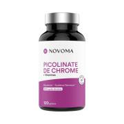 Picolinato de crómio de Novoma o Picolinato de Crómio é um suplemento alimentar com uma elevada biodisponibilidade, concebido para ajudar a manter níveis normais de açúcar no sangue e apoiar o metabolismo dos macronutrientes. Cada cápsula vegetal contém 200 µg de crómio elementar sob a forma de picolinato, uma das formas mais bem assimiladas pelo organismo.