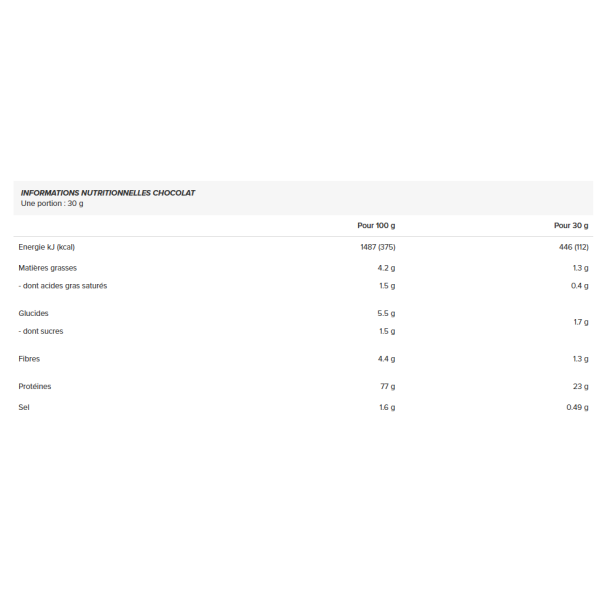 Cada porção de 30 g fornece cerca de 23 g de proteínas, por apenas 115 kcal, com um baixo teor de açúcar e gordura. A proteína ajuda a manter e a desenvolver a massa muscular, bem como a manter uma estrutura óssea normal, tornando esta proteína uma escolha relevante após o treino, como um snack ou para complementar a sua ingestão diária como parte de uma dieta equilibrada.