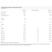 Ingredientes - maçã manga sabor a maracujá maçã 49%, manga 27%, xarope de tâmaras, sumo de maracujá 4%, cloreto de potássio, citrato de cálcio, sulfato de magnésio, sumo de limão, antioxidante: ácido ascórbico, vitaminas (B1,B2,B6,B12,E)